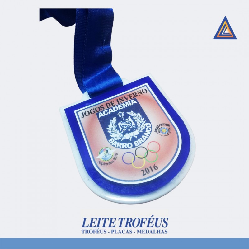 Medalha em acrílico duplo, recortada, adesivada